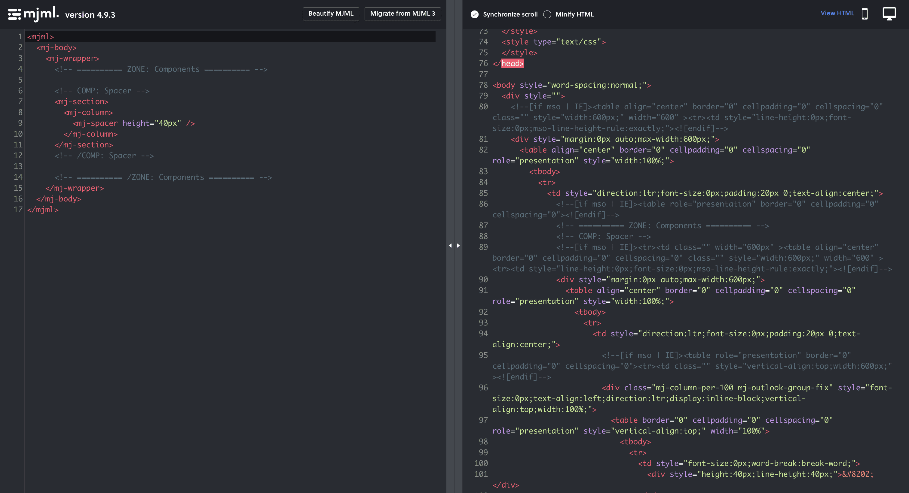 MJML is — a markup language designed to reduce the pain of writing endless HTML table nesting and email client-specific CSS. Building responsive emails is simple with semantic tags like <mj-section> and <mj-column>. This approach makes each component and template easier to write, edit, and read.